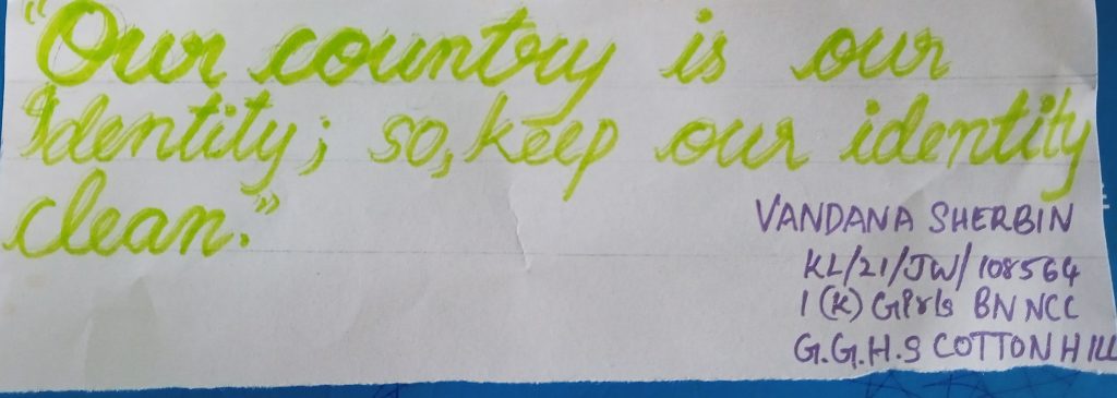 Vandana Sherbin KL/21/JW/108564 1(K) Girls BN NCC G.G.H.S. COTTON HILL