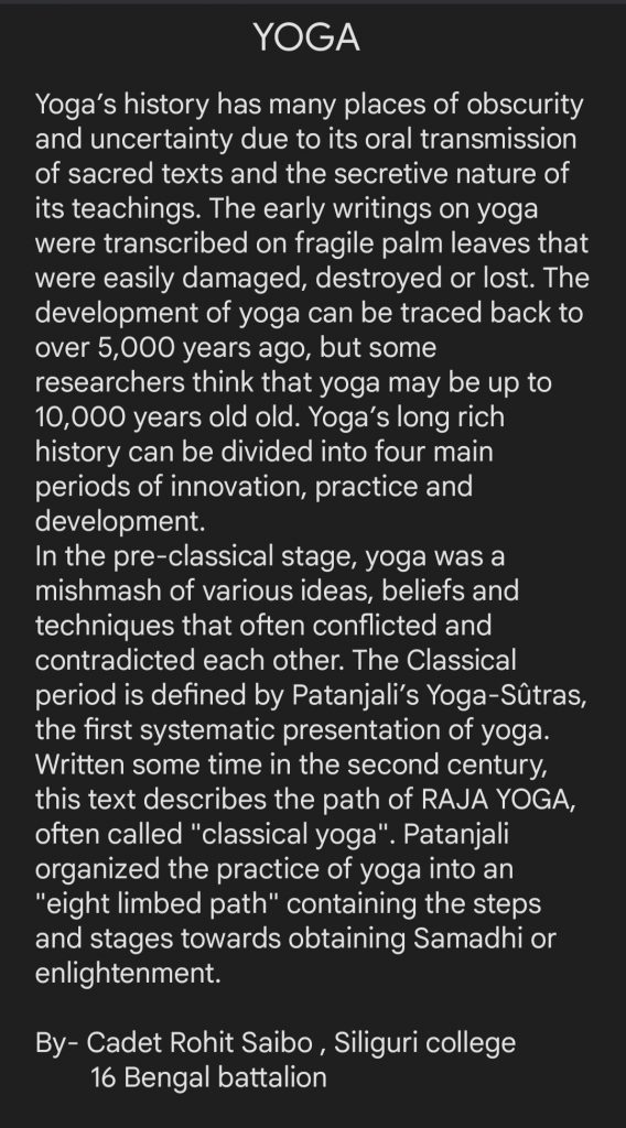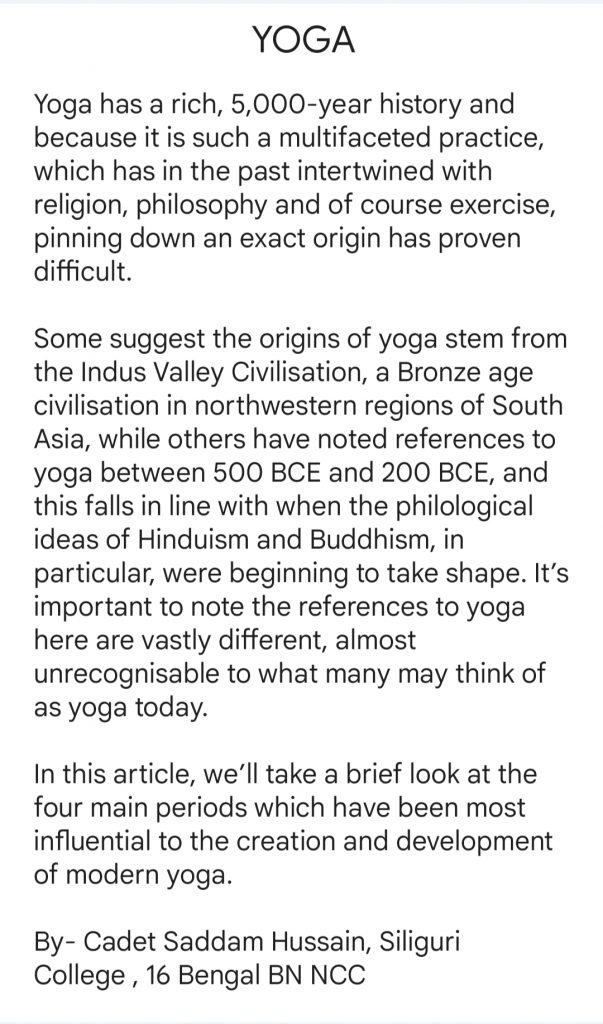 By- Tanushri Barman, 16 Bengal BN NCC, Siliguri College, Siliguri