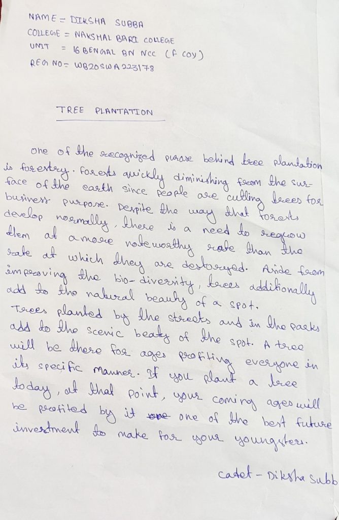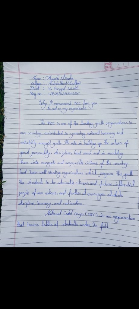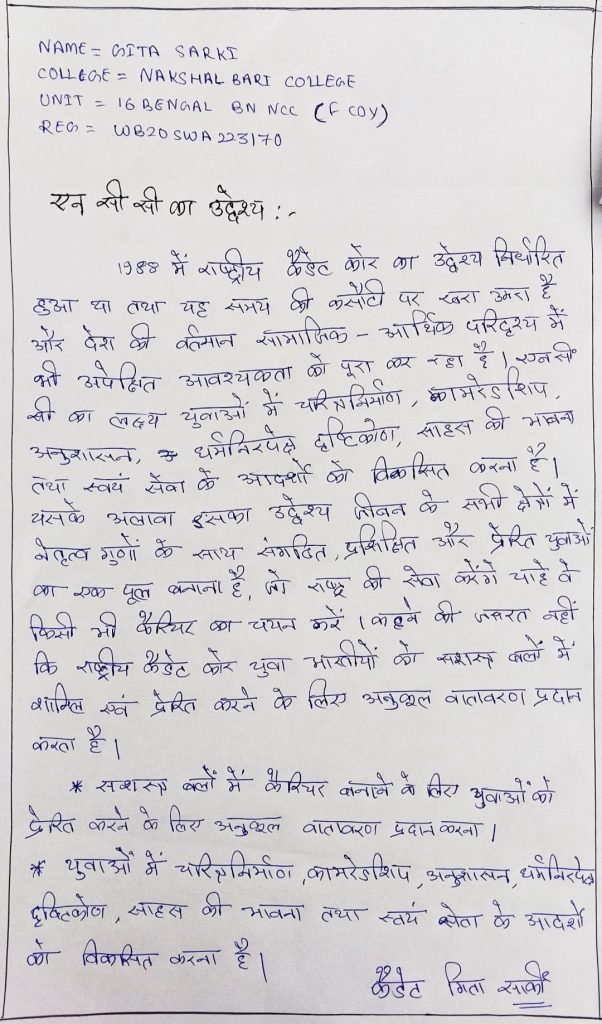 Anamita singha Nakshalbari college Unit :16 bengal BN NCC Reg no : wb21SWA214385