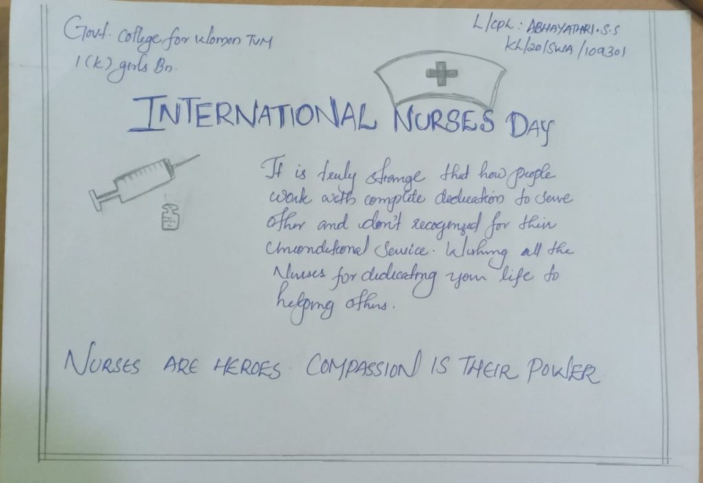 I am cadet Henaz S of Govt College for Women here presenting my article on World Nurses Day observed on May 12th every year.