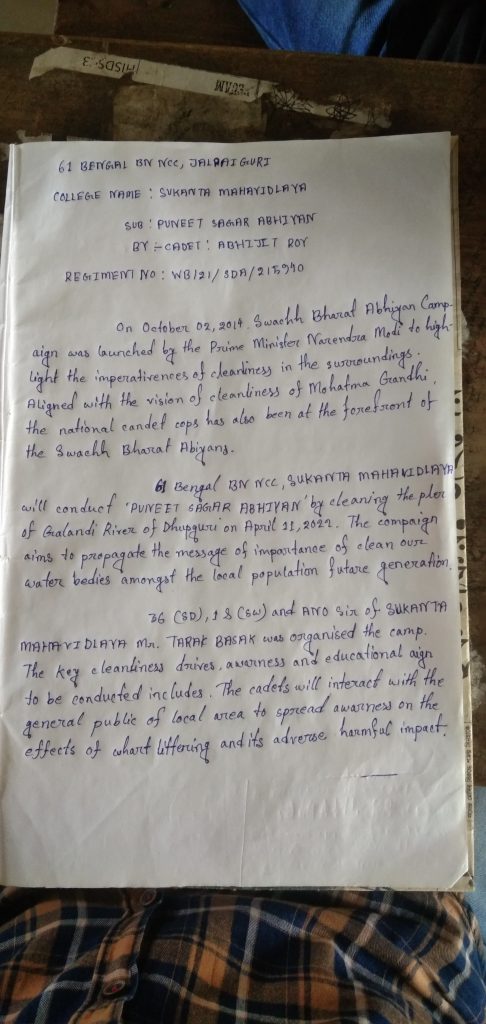 Report written by WB/21/SDA/215940 cdt name-Abhijit Roy 61BENGAL BN NCC SUKANTA MAHAVIDYALAYA