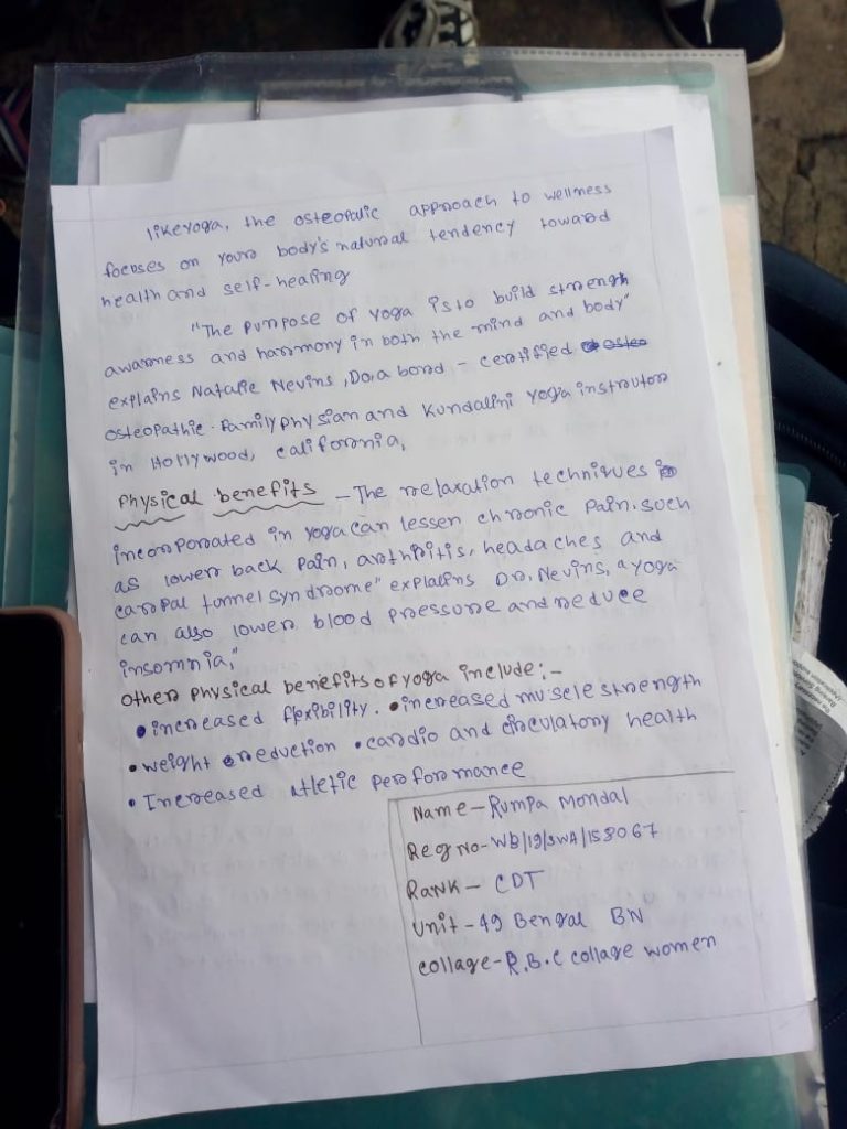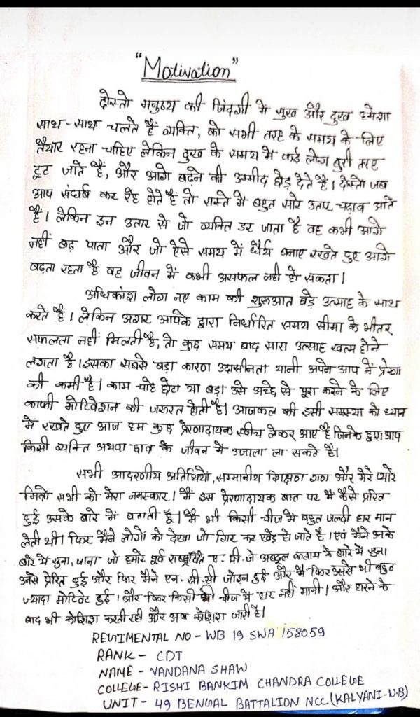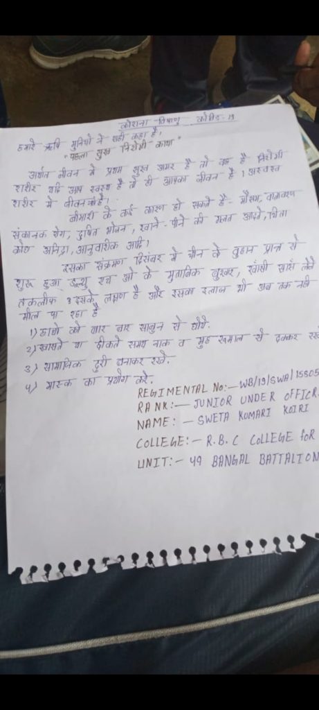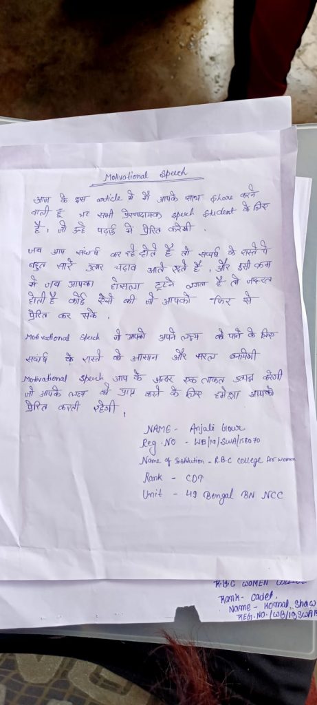 NAME-PALLABI MALLICK REG NO-WB/19/SWA/158073 RANK-CDT COLLEGE-R.B.C COLLEGE FOR WOMAN UNIT-49 BENGAL BN NCC