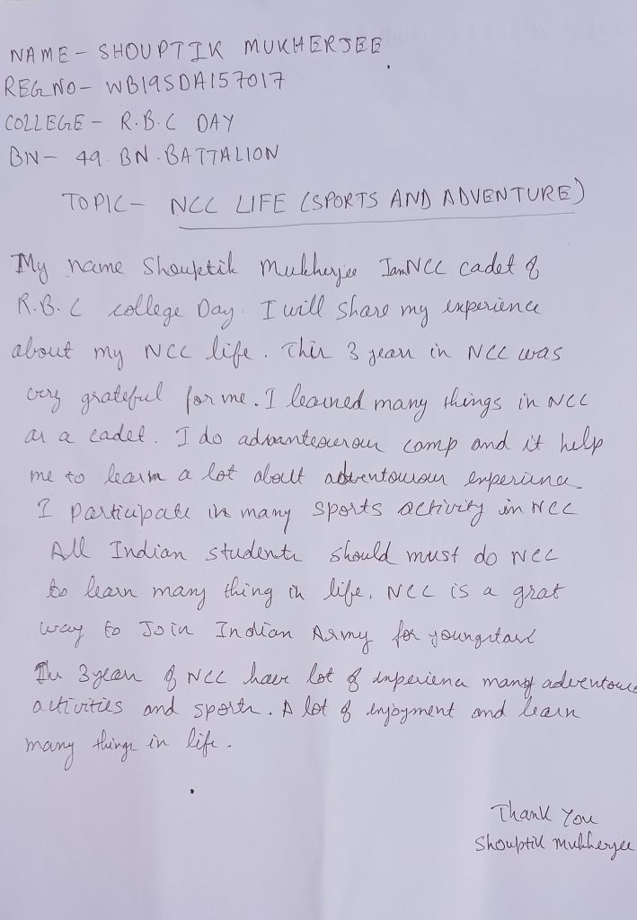 CDT Sudipa gain WB19SWA158061 49 BN NCC KALYANI
