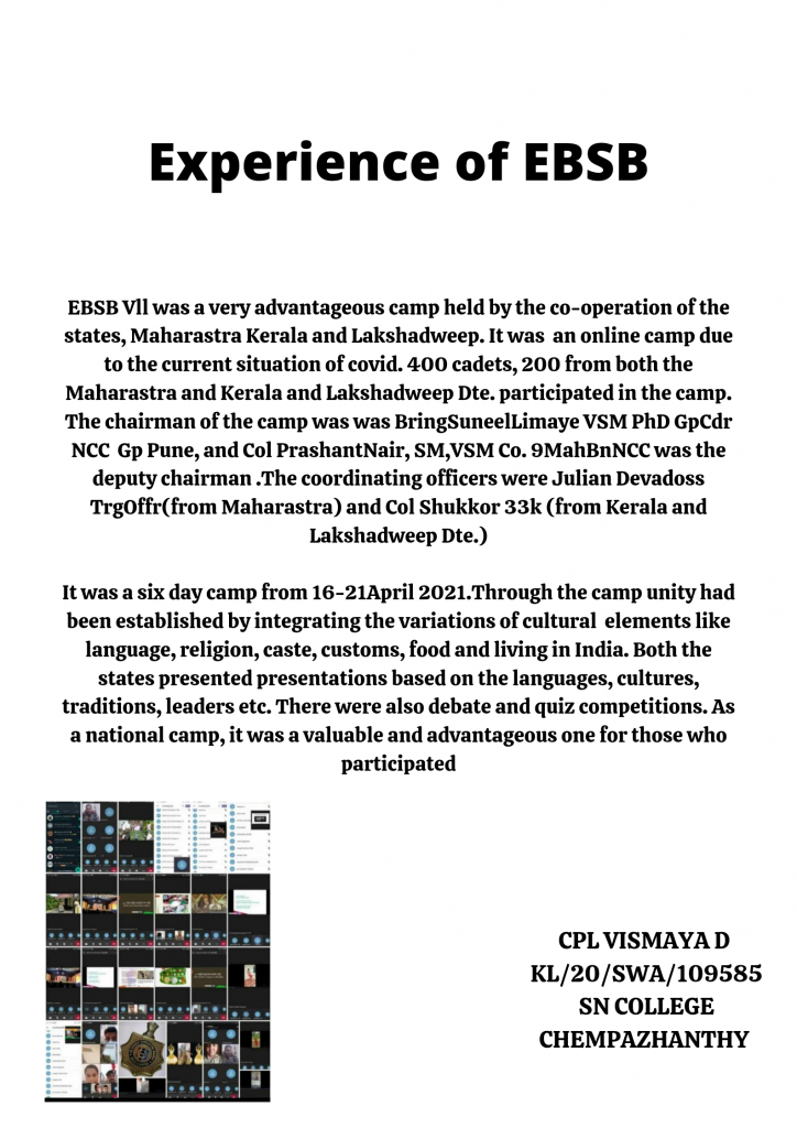 NEETHU. S SN COLLEGE CHEMPAZHANTHY 1(K) GIRLS BATTALION NCC K&L DIRECTORATE