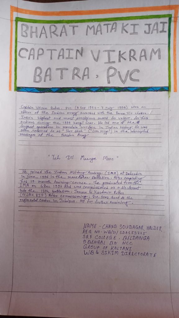 Jai Hind I am Cadet Mailin Dolkar Lepcha WB/SWA/20/227596 from 5th Bengal Battilon NCC, Darjeeling.West Bengal and Sikkim Directorate. I am currently studying in Southfield College Darjeeling, pursuing my honours degree in political science.