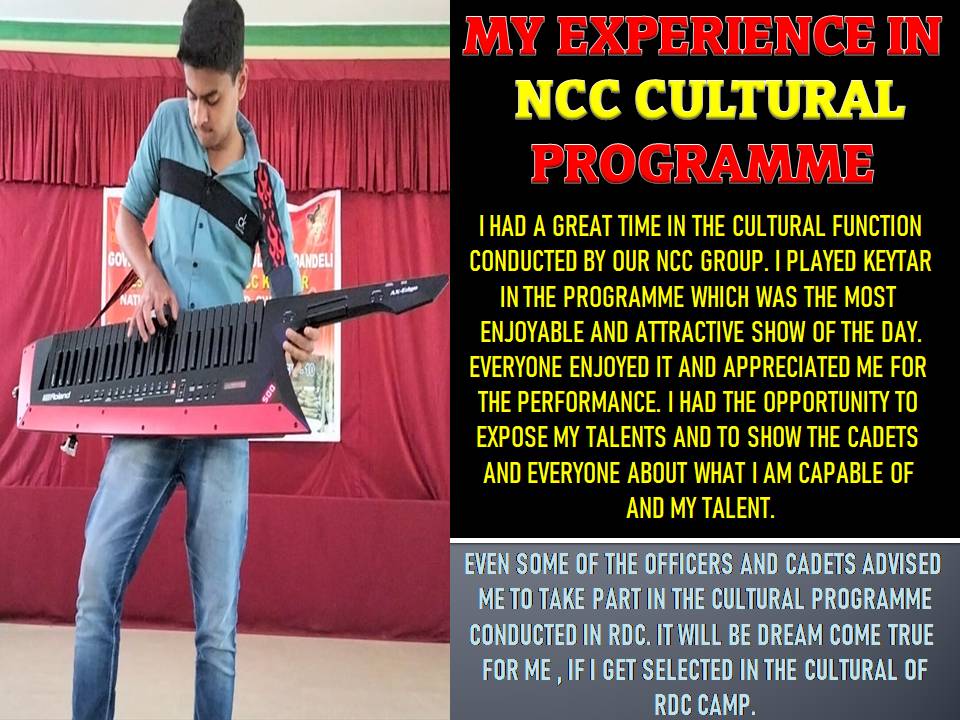 MY EXPERIENCE IN THE CULTURAL PROGRAMME OF NCC