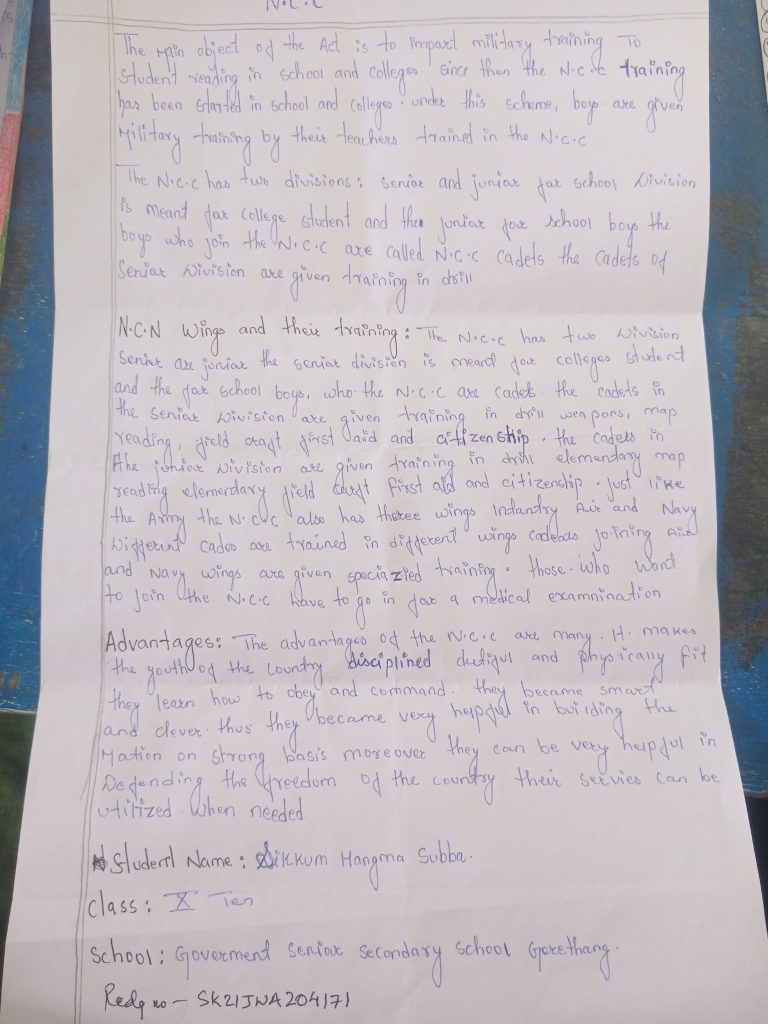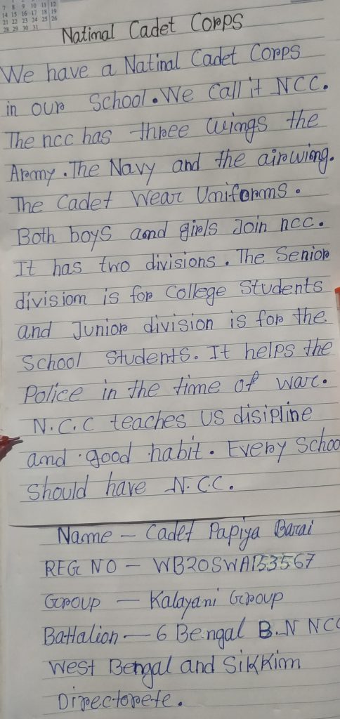 Ncc Cadet details- Name-Bharat Mahato,Regt.No - WB21SDA211201,Rank - Cdt . Ncc unit 11Bengal Bn Ncc Malda. Ncc Dte, West Bengal And Sikkim.