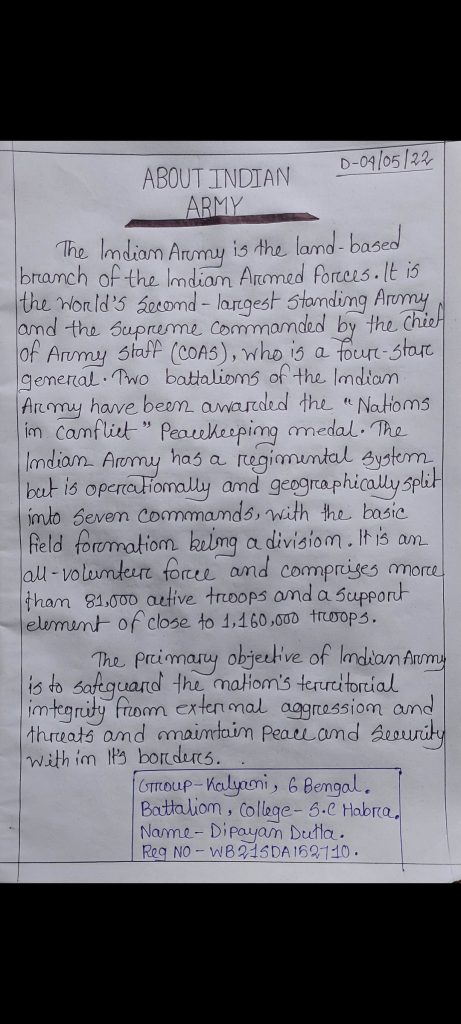 I am CADET Sangita Barman from 1/13 Bengal BN Ncc A.B.N seal college