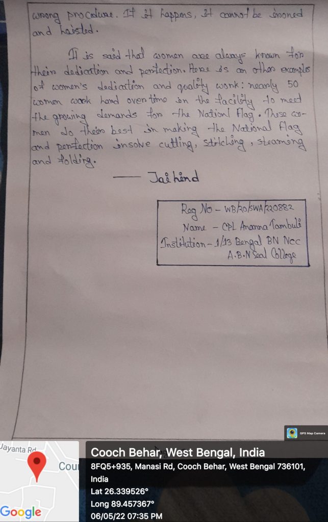 I am CPL Ananna Tambuli from 1/13 Bengal BN Ncc A.B.N seal college