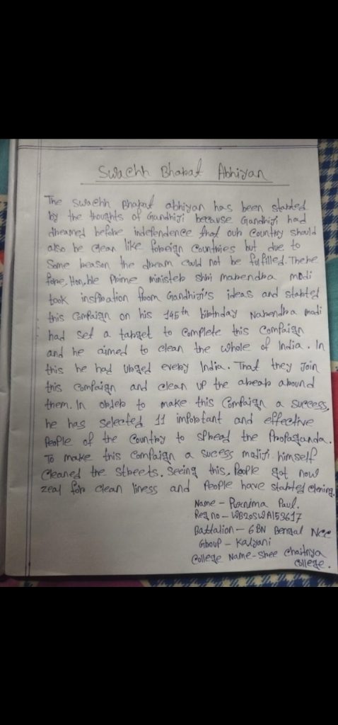 My self cadet Rahul Das Just share a easy in digital form which is called swacha Bharat abhiyan