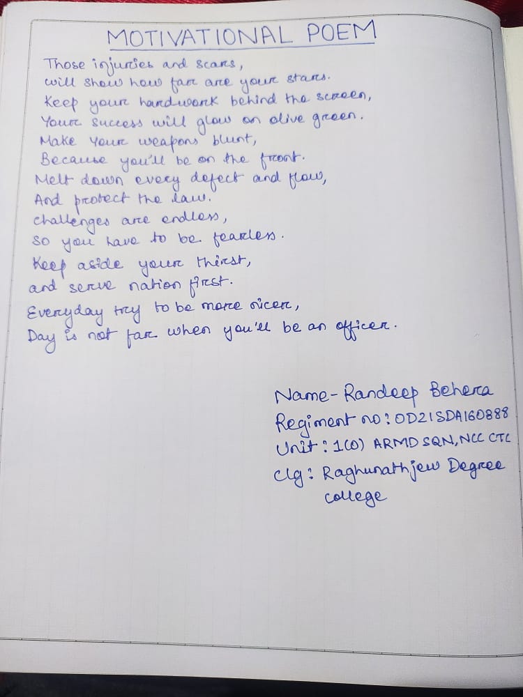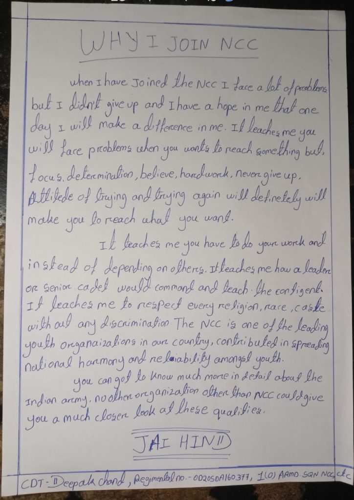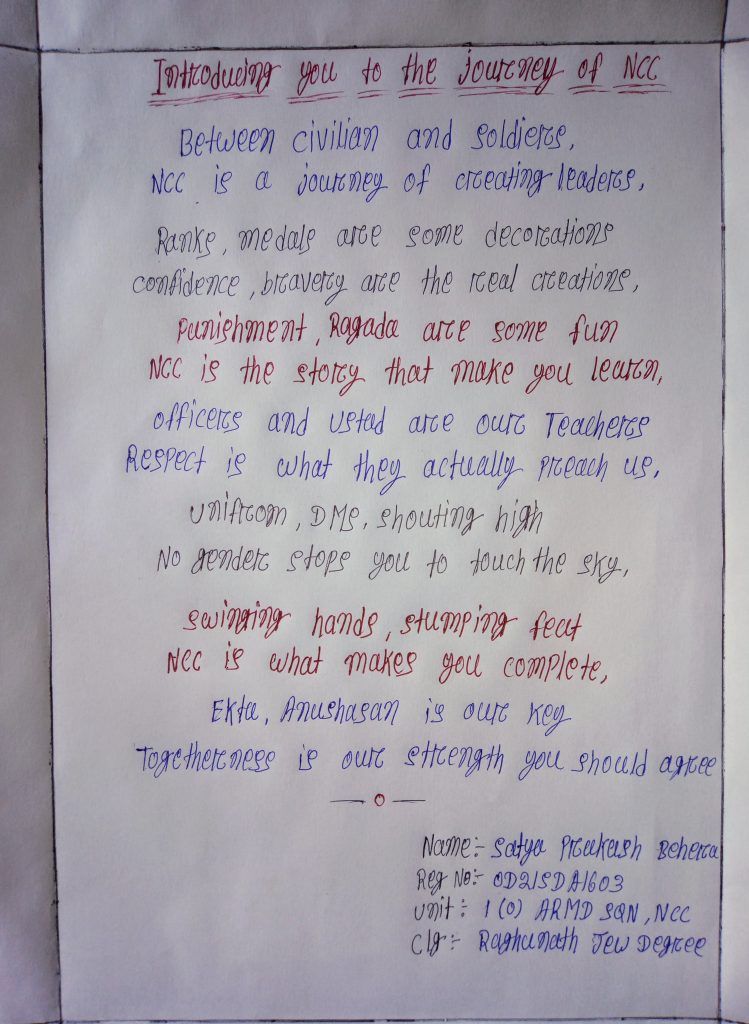 A shot poem and activities we do in national Cadet corps (ncc)