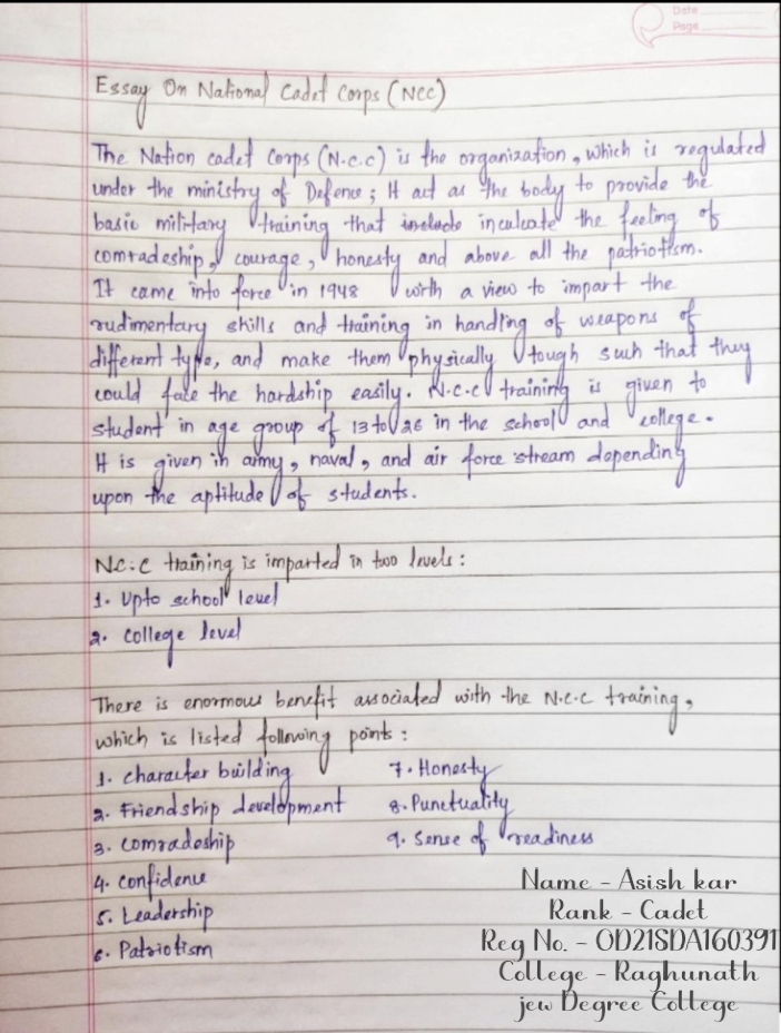A short essay and the Activities we Do In National Cadet Corps ( NCC )