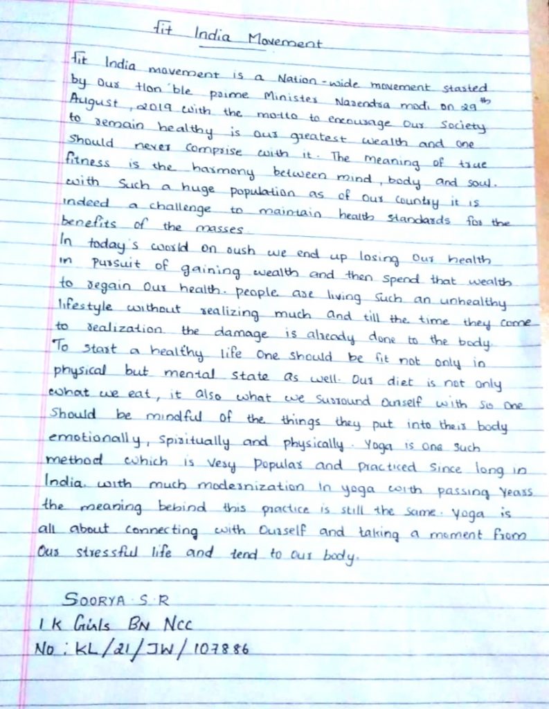 SOORYA S R 1K Girls Bn NCC No: KL/21/JW/107886 St. Mary's HSS Pattom, Trivandrum, Kerala