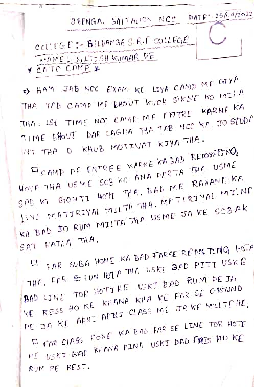 CDT AYAN MONDAL SRF COLLEGE 9 BENGAL BN NCCC KALYANI GP WB& SIKKIM DTE