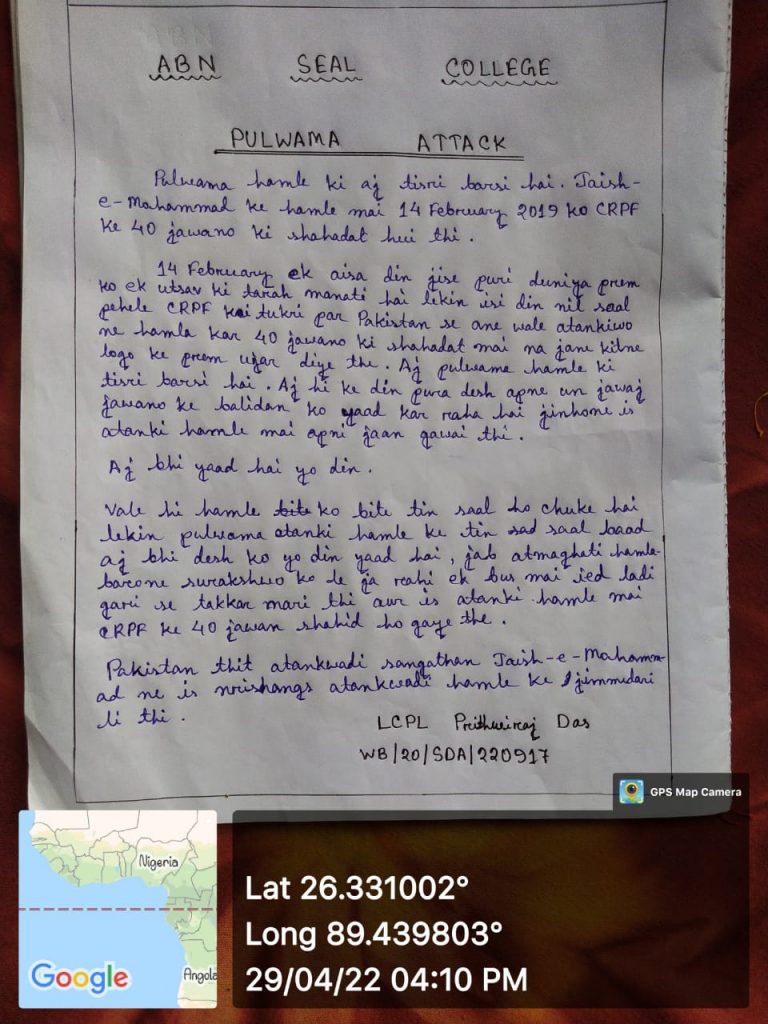 I am LCPL prithwiraj Das from 1/13 Bengal BN Ncc A.B.N seal college