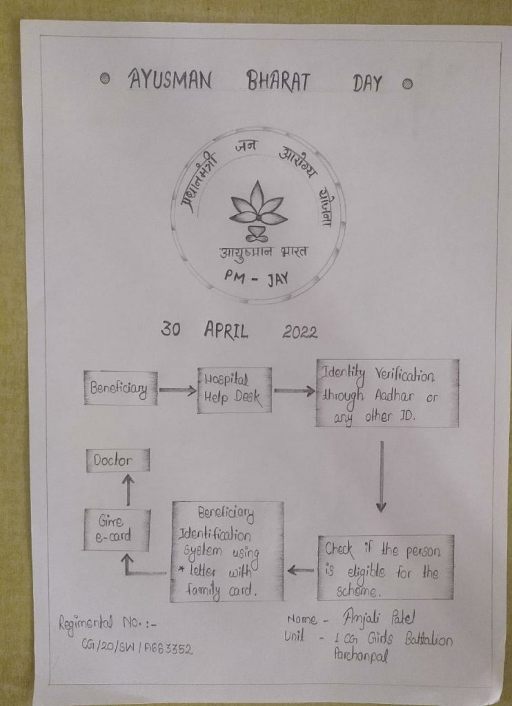 I am cadet Anjali Patel from 1 CG Girls Battalion Parchanpal. I made a poster on Aayushman Bharat Day.