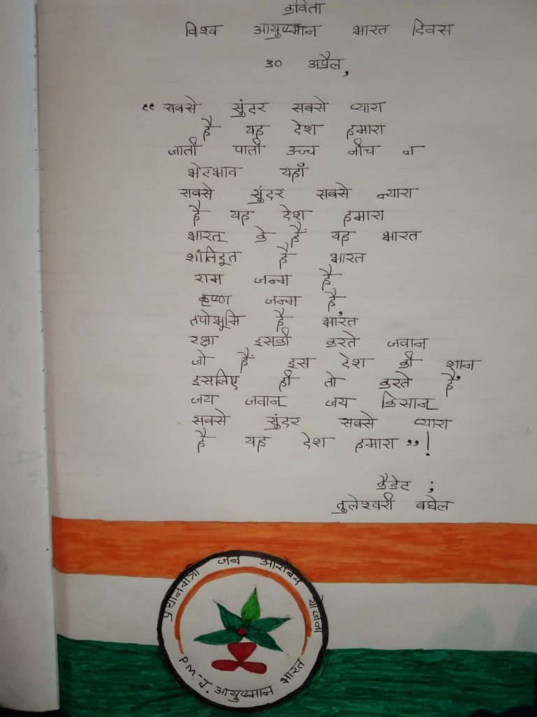 30 April Vishva aayushman Bharat Divas per my kuleshwari Baghel shasakiy uchhtar madhyamik vidyalay bade dunger se drawing Kavita likhkar logon Ko prerit ki dhanyvad.