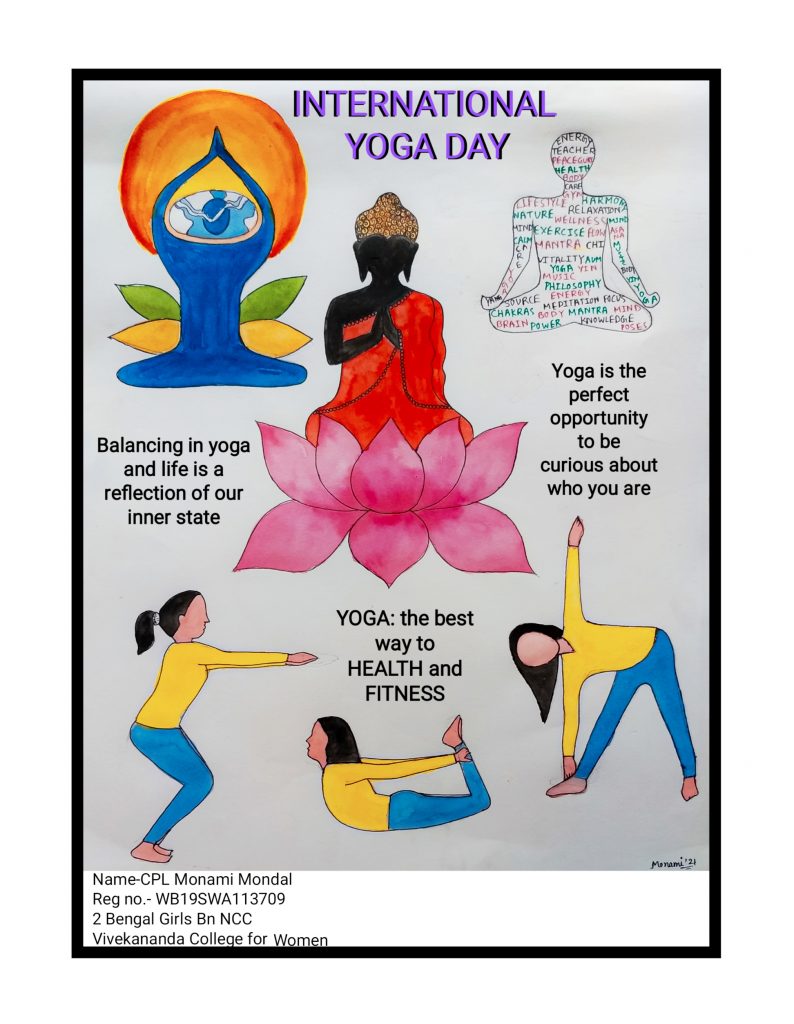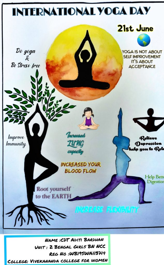 Reg.no-WB19SWA113734.I SGT SANCHARI BASAK, VIVEKANANDA COLLEGE FOR WOMEN, FROM 2 BENGAL GIRLS BATTALION NCC, KOL-B . I PRESENT A POSTER ON YOGA DAY AND THROUGH THIS POSTER I CELEBRATING INTERNATIONAL DAY OF YOGA.