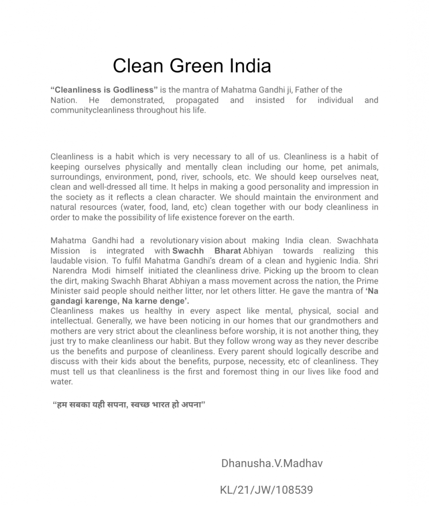 Dhanusha.V.Madhav A girl NCC cadet from Kerala who is trying to make our India clean