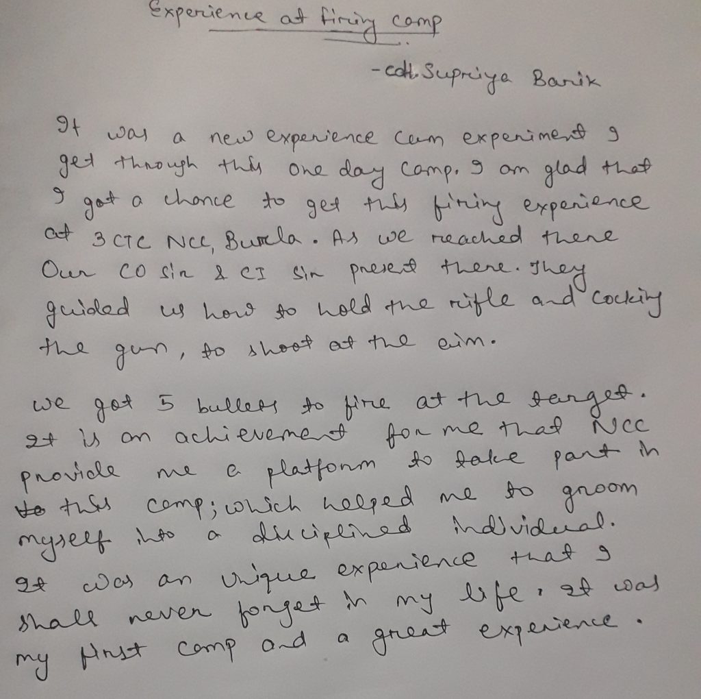 By CDT Shreyasi shaw, 2BN(B)NCC, WB&SIKKIM DIRECTORATE
