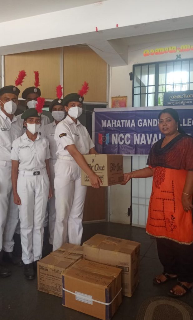 We the cadets 1k naval unit ncc,mahatma gandhi college distributed lotions at hospital during covid pandemic