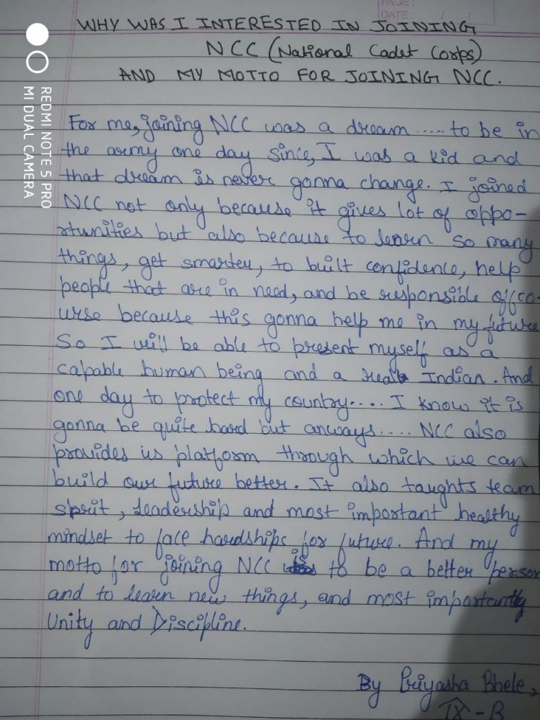 Cadet name: S. Sinega NCC unit: 5(TN) NAVAL NCC UNIT. Pondicherry