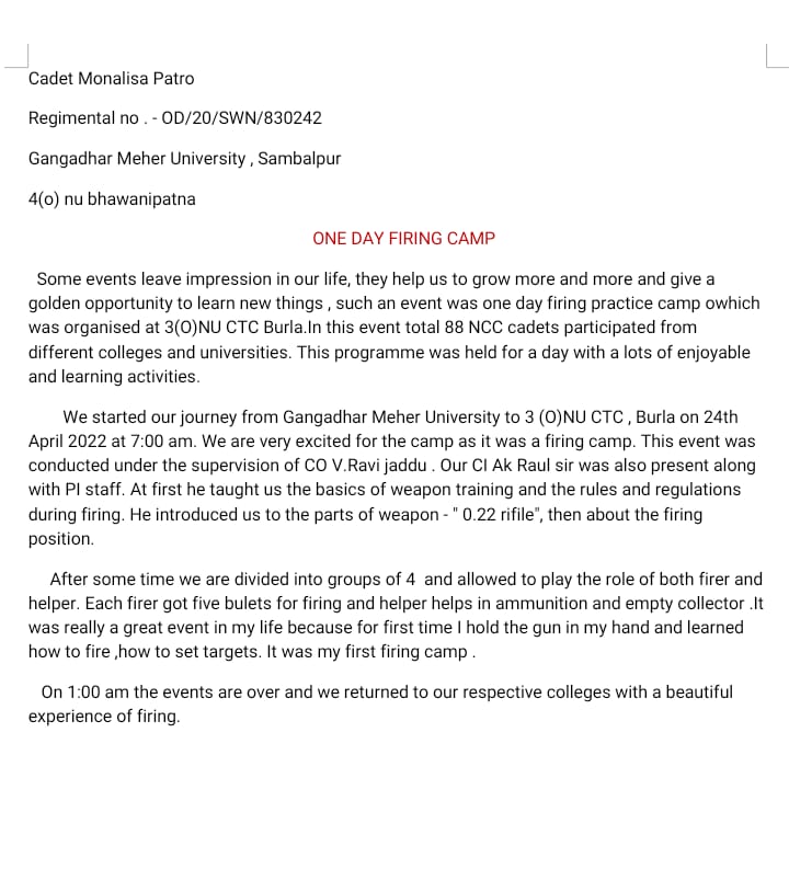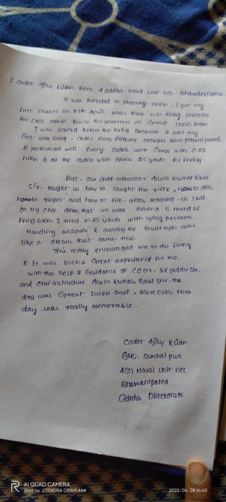 By CDT JYOSHNARANI PRADHAN Regimental number OD/20/SW/N/830240
