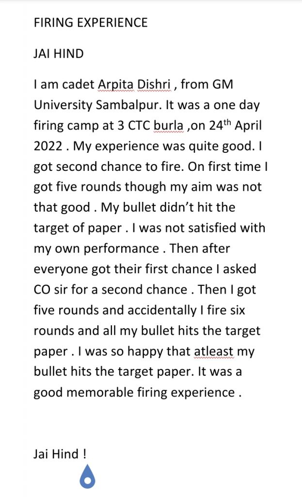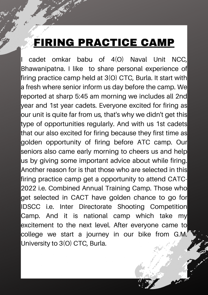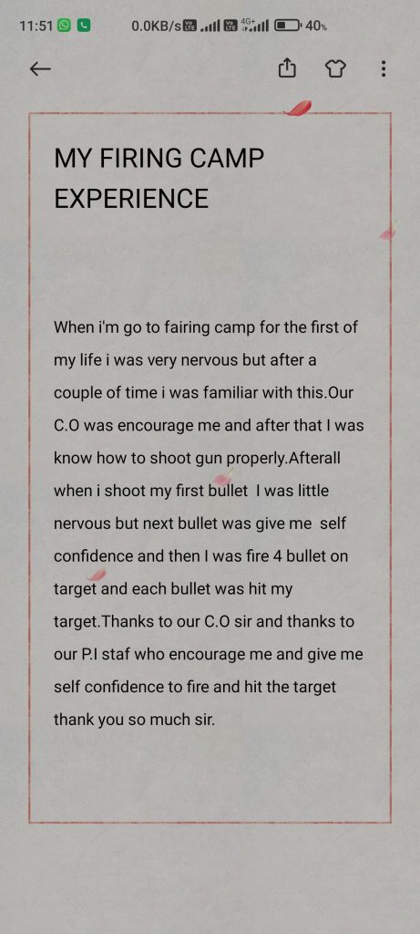 Jay Hind. I Cadet Soumya Ranjan Meher here describing about my firing camp.