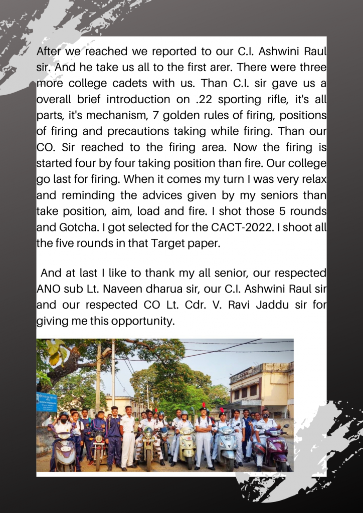 Cadet K Rajesh Reddy 4 (O) Naval Unit, Bhawanipatna.... ( Firing experience)
