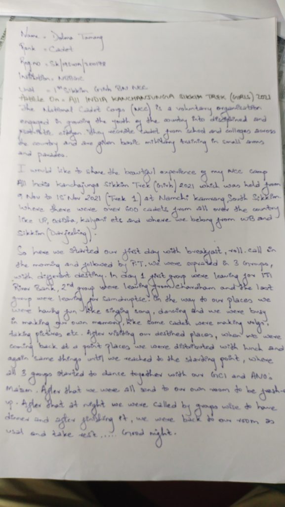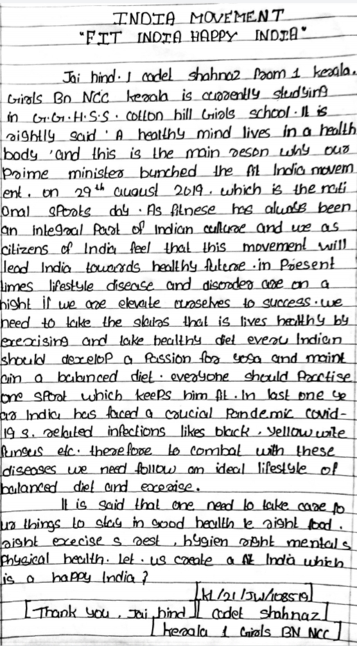 Cdt Nandini Sinha Handwritten article on cancer awareness