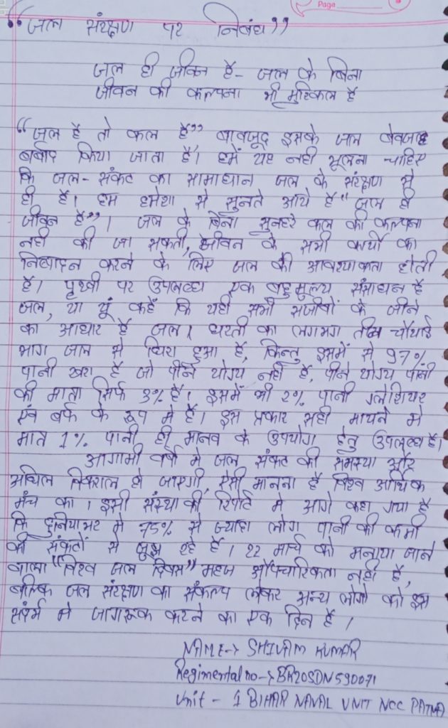 जल संरक्षण CDT SHIVAM KUMAR BR20SDN590071 NO1BIHAR NAVAL NCC PATNA