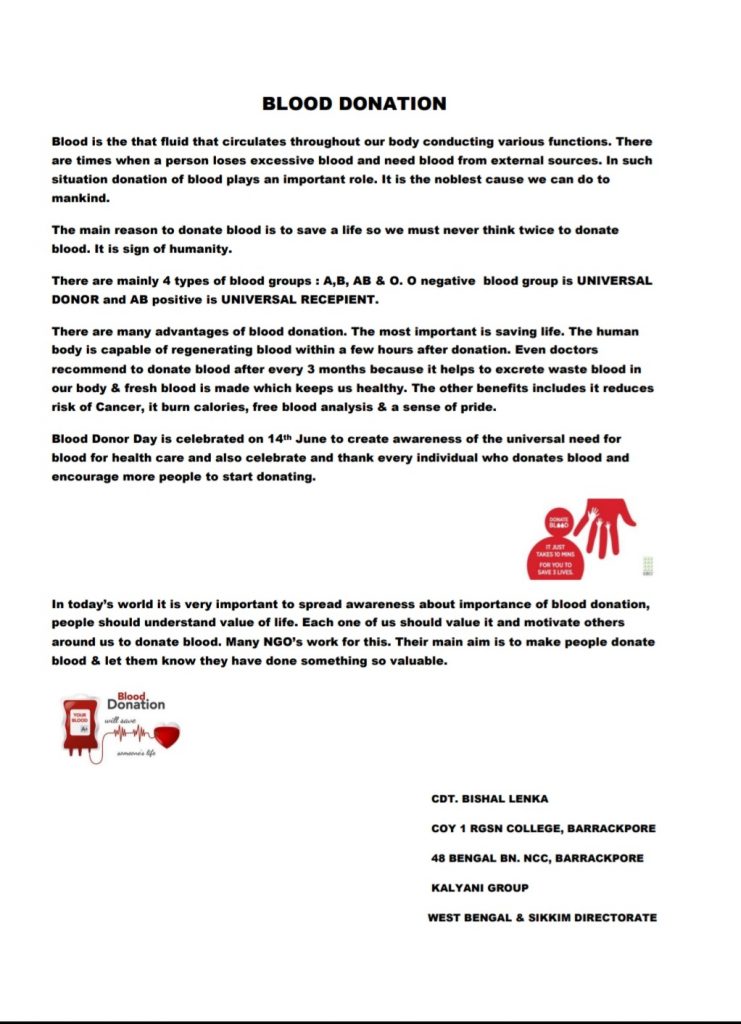 This article includes importance of blood donation, different blood groups, benefits of blood donation with some informations about WORLD BLOOD DONOR DAY