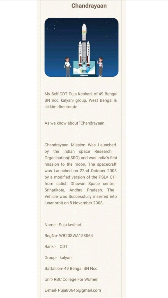 CDT PUJA KESHARI, 49 BENGAL BN NCC, RBC MORNING COLLEGE, KALYANI GROUP, WB & SIKKIM DTTE.