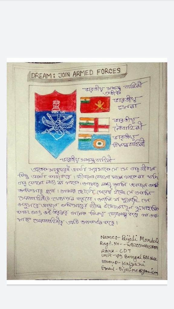 CDT BIJOLI MONDAL, 49 BENGAL BN NCC, RBC MORNING COLLEGE, KALYANI GROUP, WB & SIKKIM DTTE.