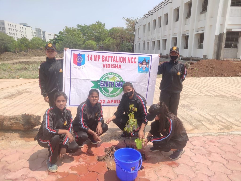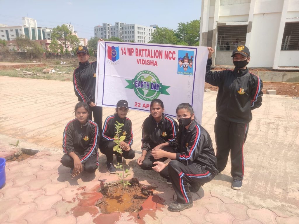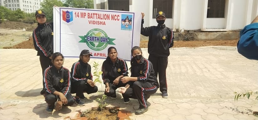 Earth day par goverment girls college vidisha me ncc Cadets ne plantation kiya
