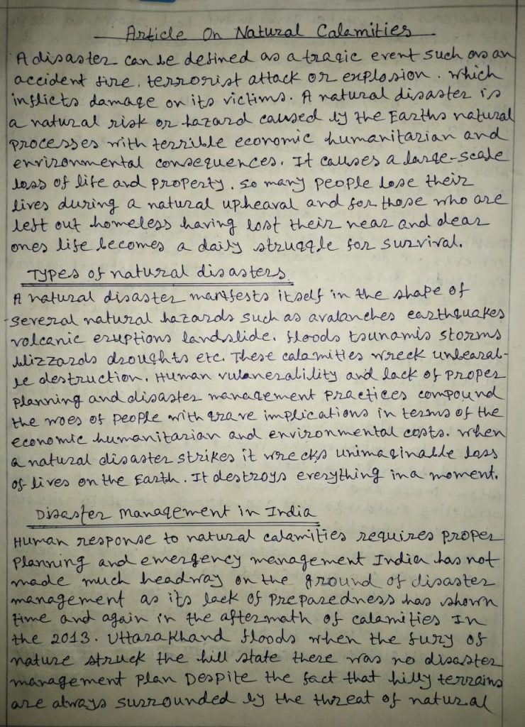 Article on Natural calamities