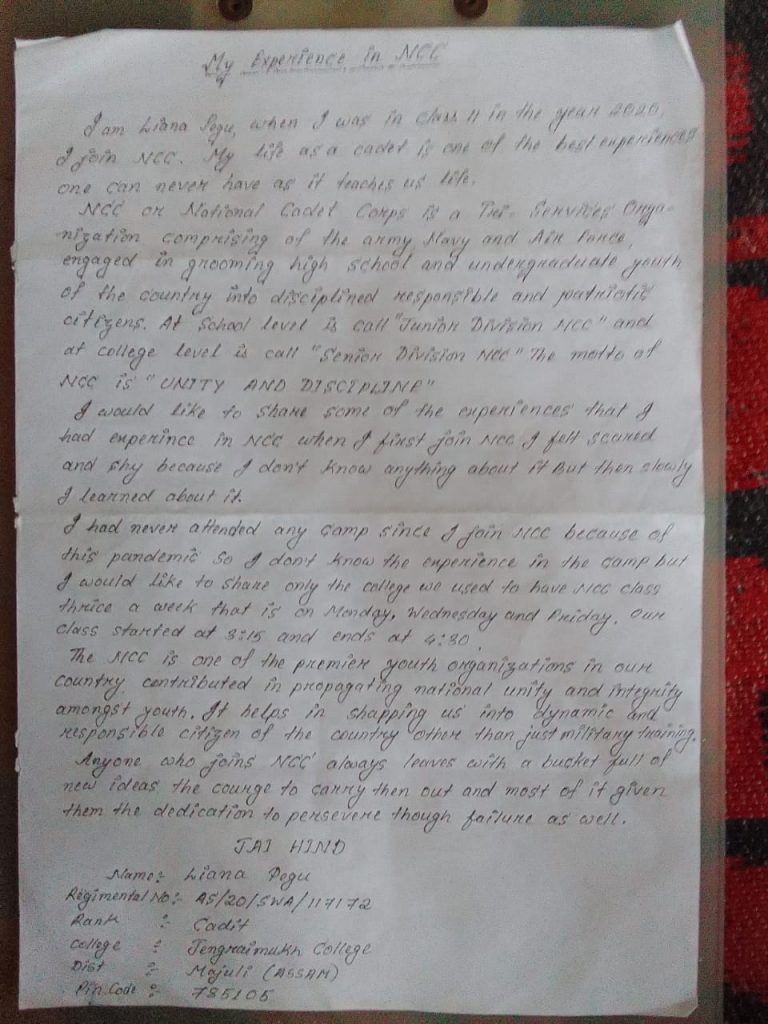Name - Sanchari Chatterjee Rank-Cadet Registration No - WB21SWA109253 Unit Name-21 BENGAL BN NCC