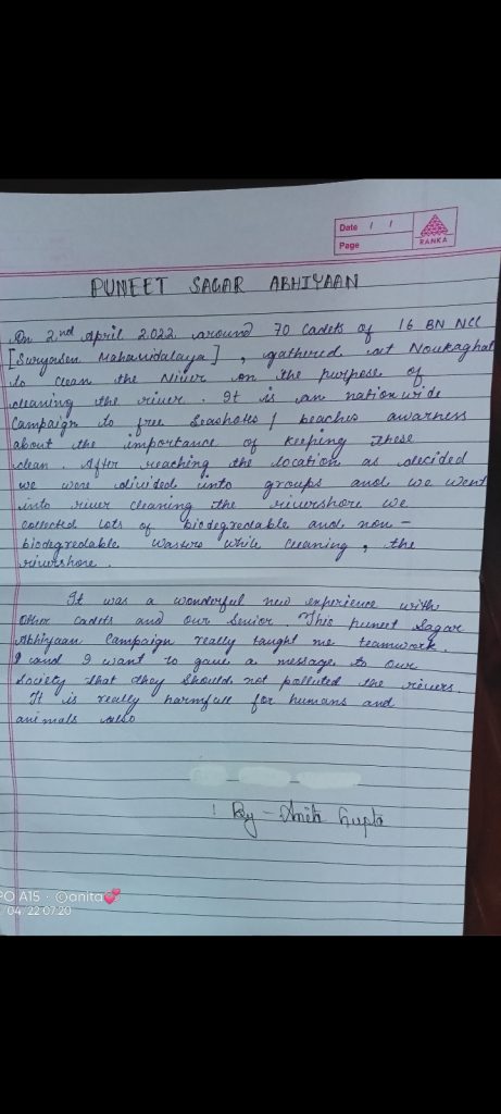 My name is Cadet Sreerema P NCC no: KL21SWA 195777 9(k)Girls Bn NCC Calicut group I'm continuing my degree from SNG College Chelannur.