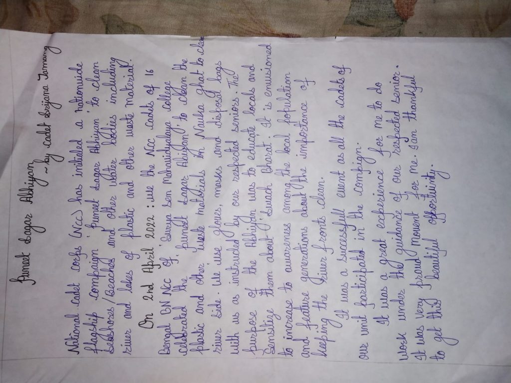 SUBMITTED BY CADET RAVI CHHETRI,WB21SDA214484,SURYA SEN MAHAVIDYALAYA, 16 BENGAL BN NCC, OF WEST BENGAL AND SIKKIM DIRECTORATE