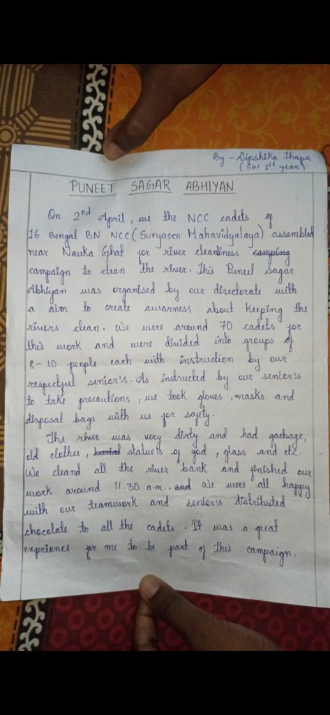 Dipshika Thapa , Suryasen mahavidyalay, 16 Bengal BN NCC , Punit Sagar Abhiyan