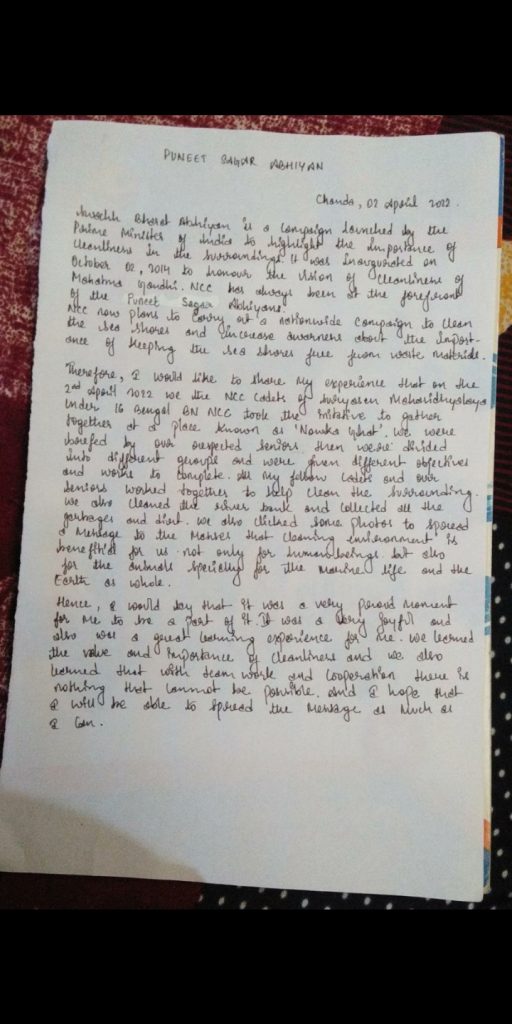 Cadet Chanda nandi from first year recently pursuing BA in political science honours. I'm glad that I was a part of this activity, I learned alot of learning experience through this.