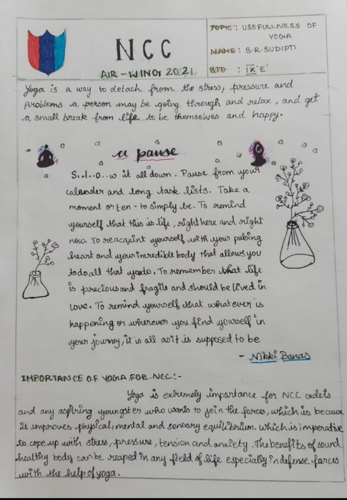 I'm Cadet Devyani Malusare from 1 GUJ AIR NCC. The way we need food to keep our body energetic and healthy is the way we need yoga to keep our mind healthy.