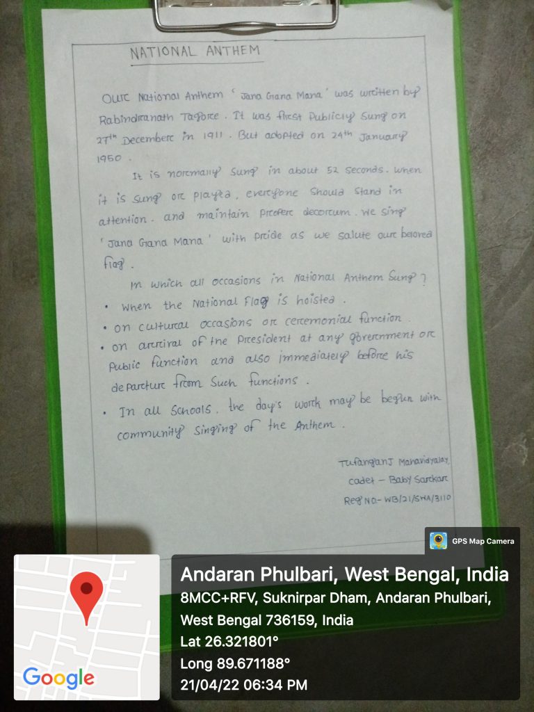 I'm cadet baby sarkar from 5/13bn NCC at Tufangnj mahavidyalay.. Reg no. WB/21/JWA/3110