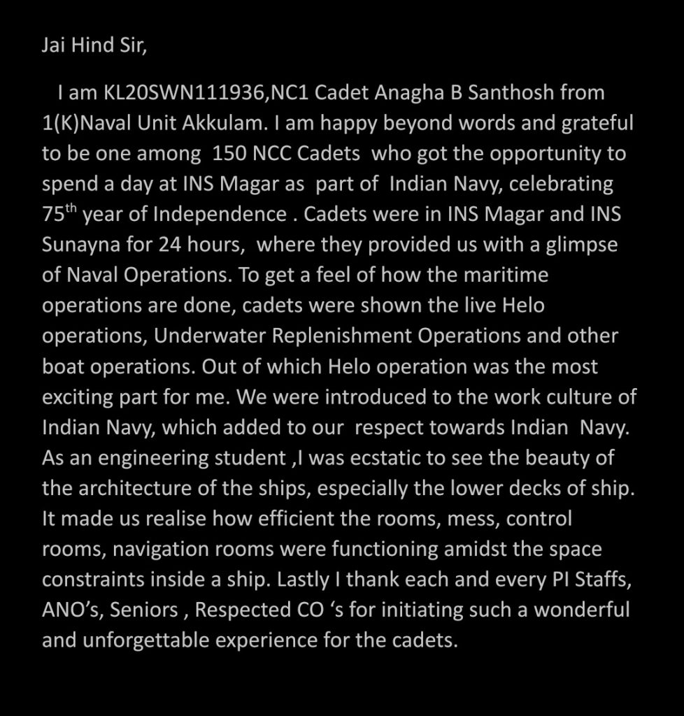 Anagha B Santhosh Cadet no:KL20SWN111936 1(k)Naval unit akkulam