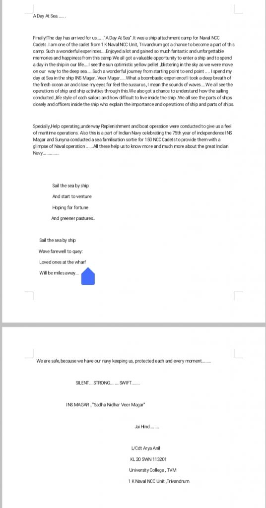 Cadet Jeeva Cdt no:- KL20SWN113106 1(K) NAVAL UNIT NCC,TVM
