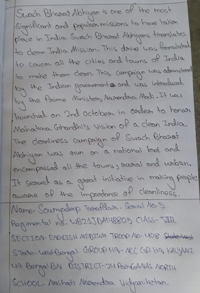 Cadet Avishek Naskar reg no WB21SDA109289