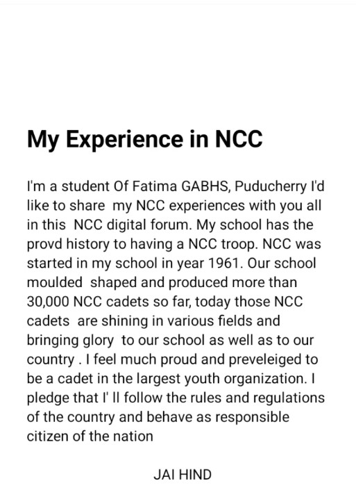 CADET RONIT KUMAR 2 UP EME COMPANY NCC BHU VARANASI GP HQ -A UP DIRECTORATE Bilingual Article It's about my experience about NCC Trainings and Camps.