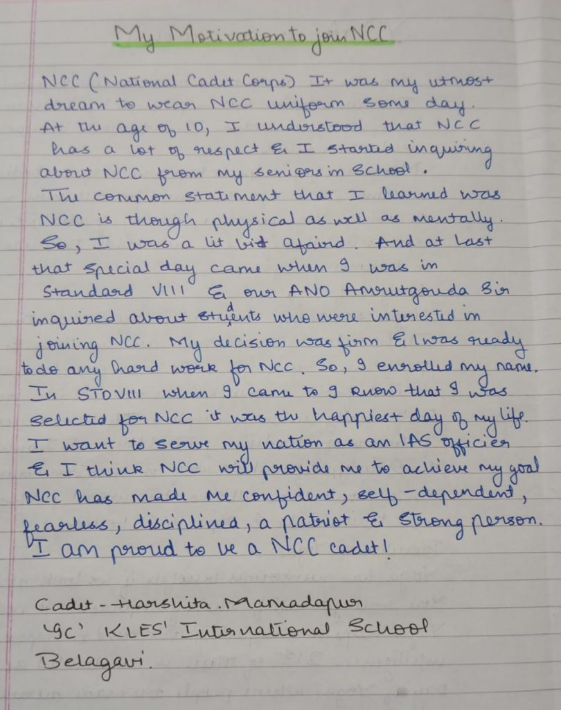 Cadet Harshita Mamadapur KLES' INTERNATIONAL SCHOOL, BELAGAVI