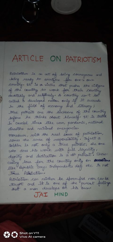 This article is about patriotism. It is written by cadet Arshpreet Kaur 119018