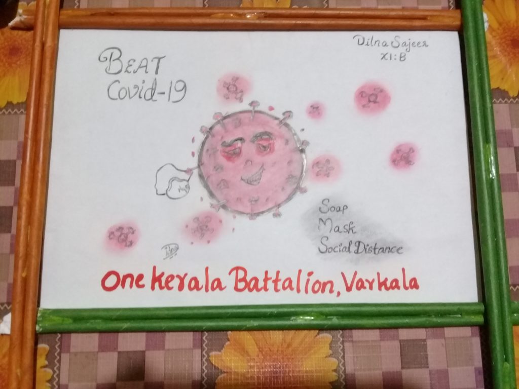 Iam Dilna Sajeer, in this drawing i assert about the importance of covid 19 prevention.Thank you.? By Cdt.Dilna Sajeer from ker Bn NCC (1) unit.